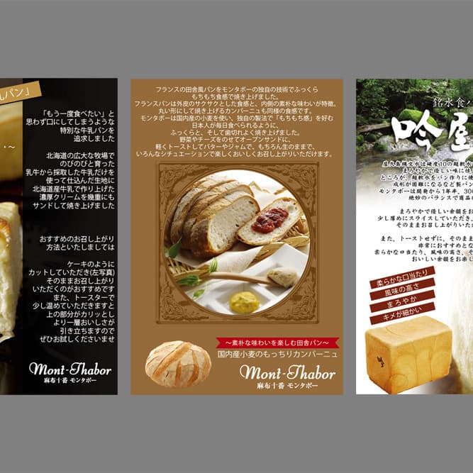 | Price(一例です、区分や業種で異なります) | ロゴデザイン ¥30,000(区分:個人店) ショップカード ¥15,000(区分:カードサイズ両面) ちらし、フライヤー ¥25,000(区分:A4片面) 名刺デザイン ¥8,000(区分:飲食店両面) webデザイン ¥150,000〜(区分:3コンテンツ程度、レスポンシブ) オンラインショップ ¥300,000〜 専属委託デザイン販促部 ¥100,000〜/月額 |